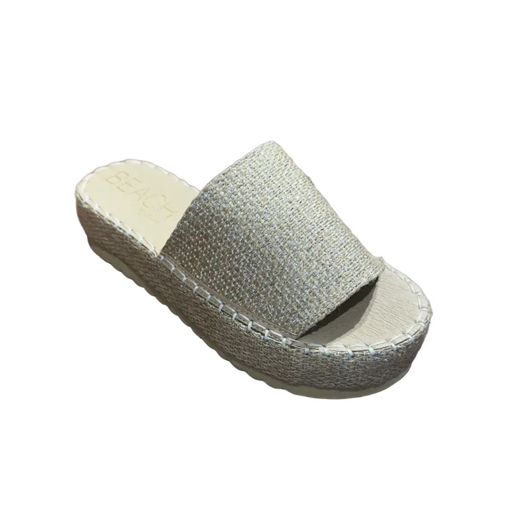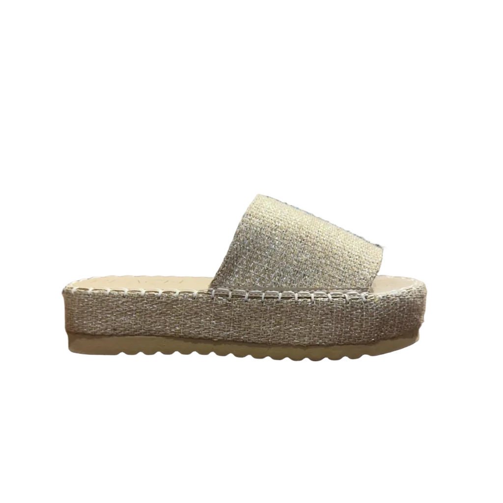 Step into effortless style with the Matisse Del Mar Gold Sparkle sandals, a breezy platform slide designed for all your warm-weather adventures. These sandals blend a chic gold finish with a braided raffia-style upper that elevates casual looks from beach days to brunch.