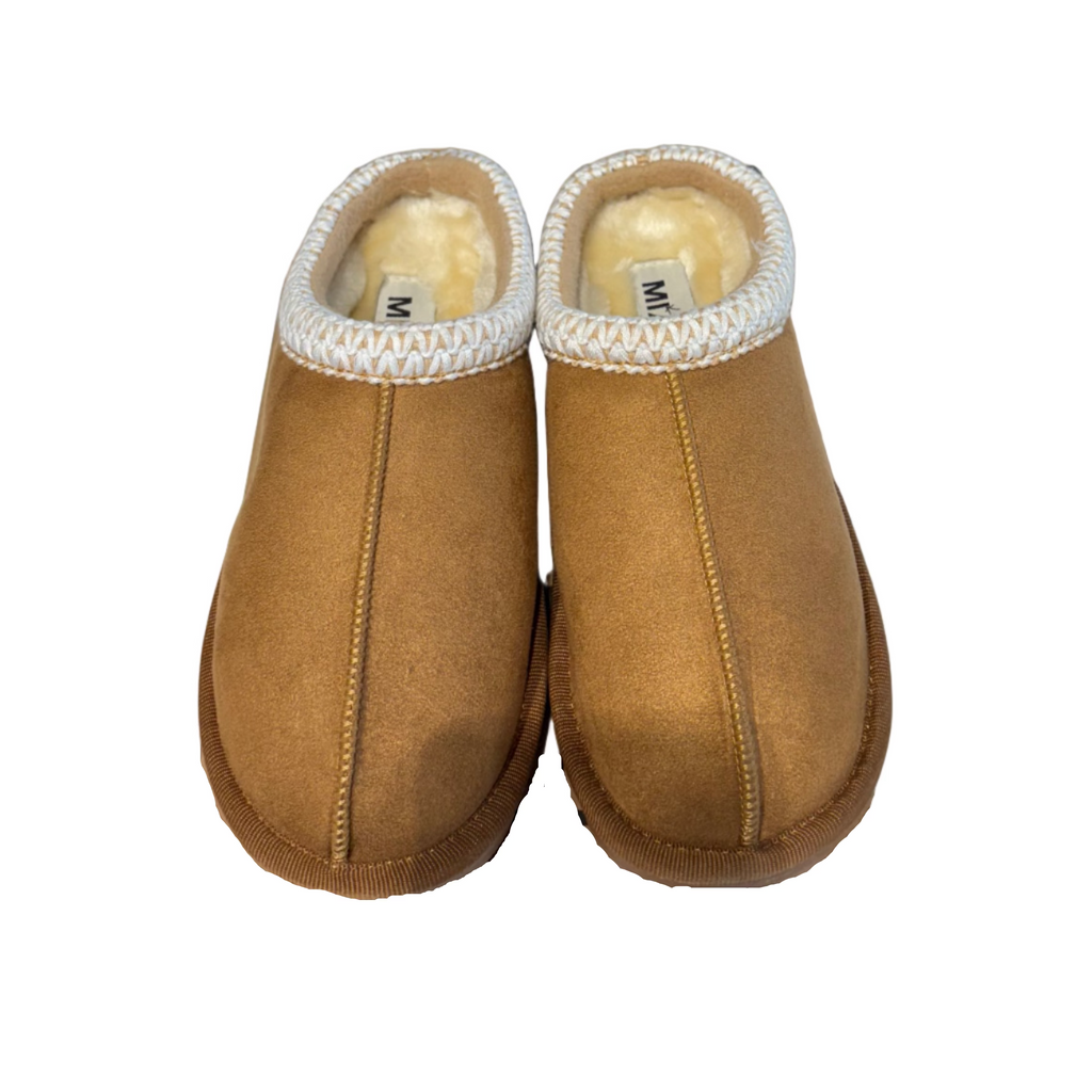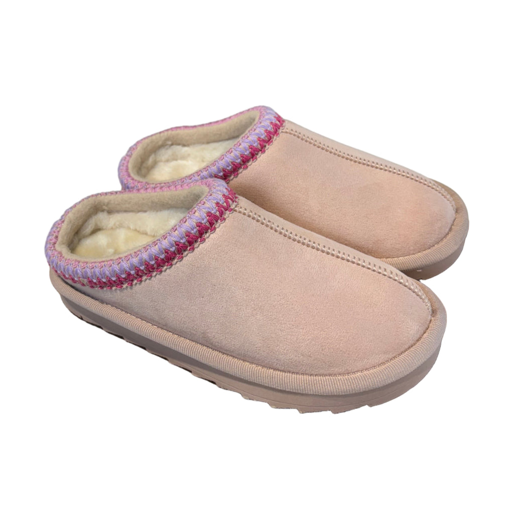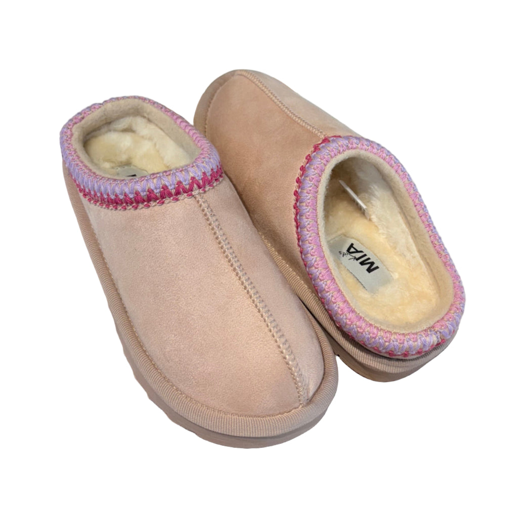 The Mia Kids Lil Downee clog brings stylish charm, cozy comfort, and durable wear to your child’s everyday wardrobe. Designed with a faux suede upper and soft fleece lining, it keeps feet warm and comfortable throughout the day—perfect for school, family outings, or playtime.