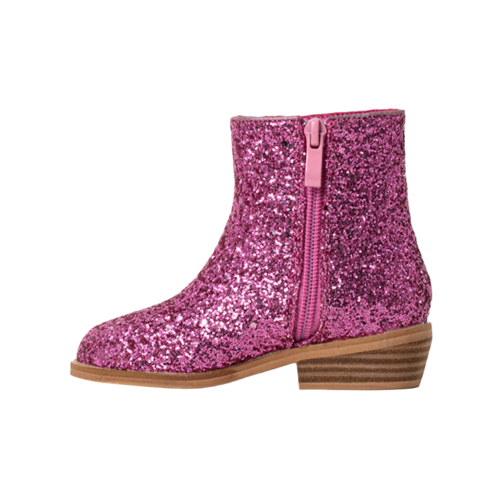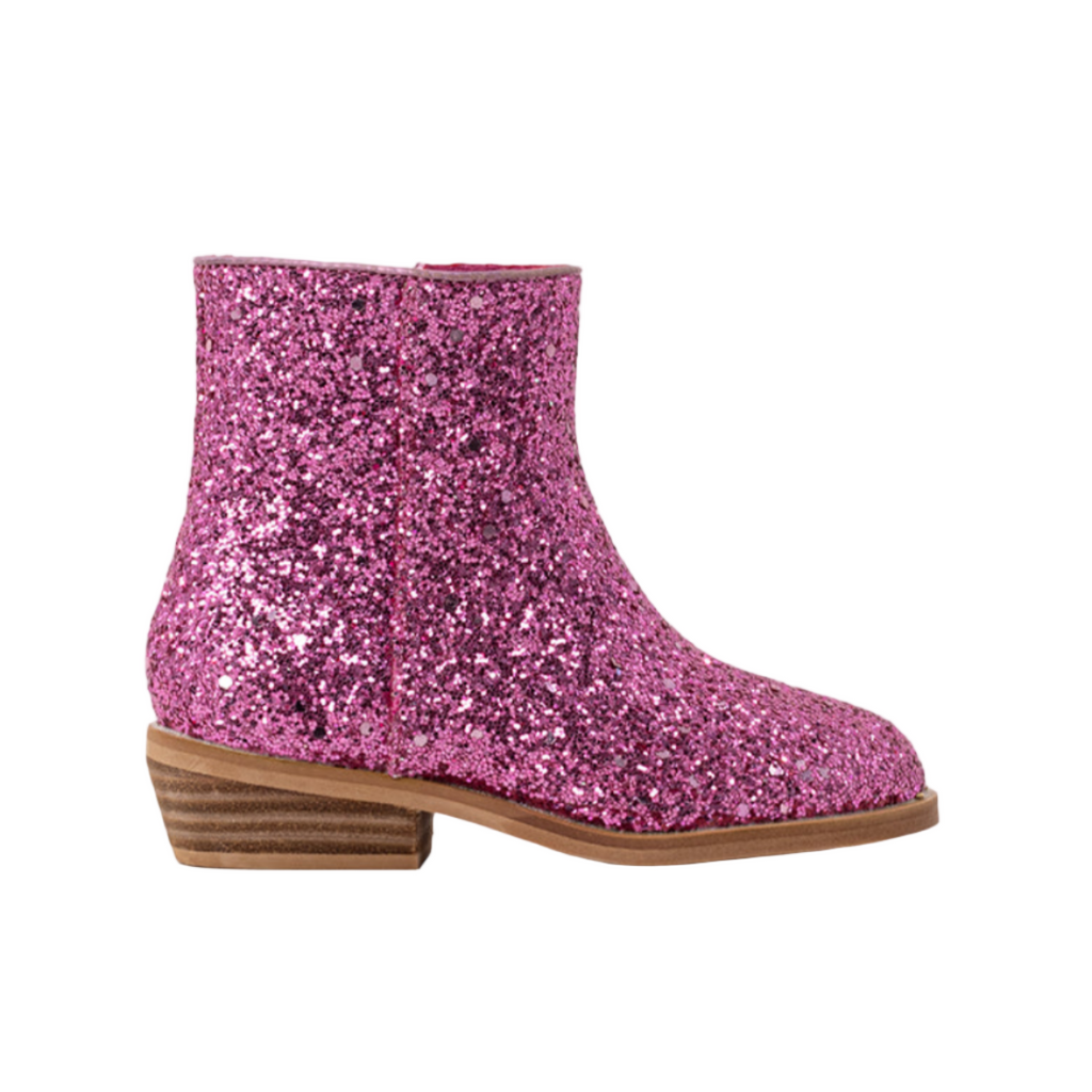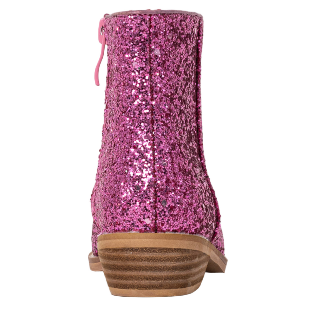All pink, all sparkle, all hers. VANILLA MINI in Pink Glitter is pure joy wrapped in a boot. The bright fuchsia glitter upper, soft stacked heel, and zipper closure make it playful and practical for tiny fashion icons. It’s her new favorite party boot, even if the party is the grocery store.