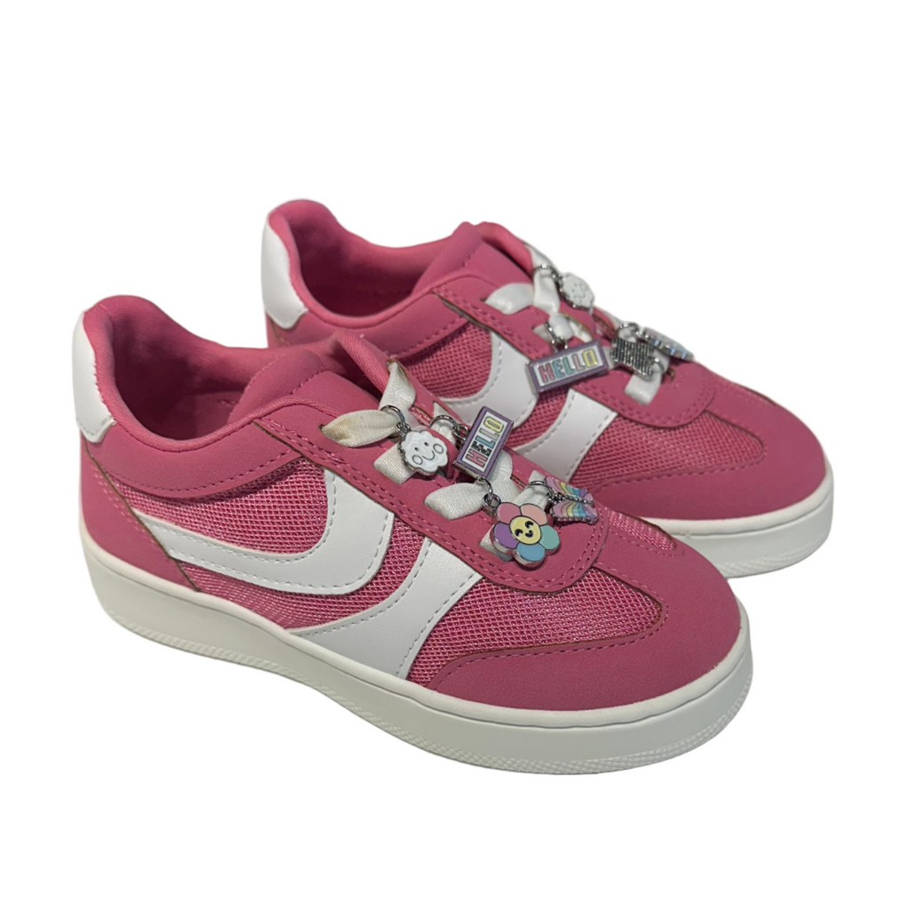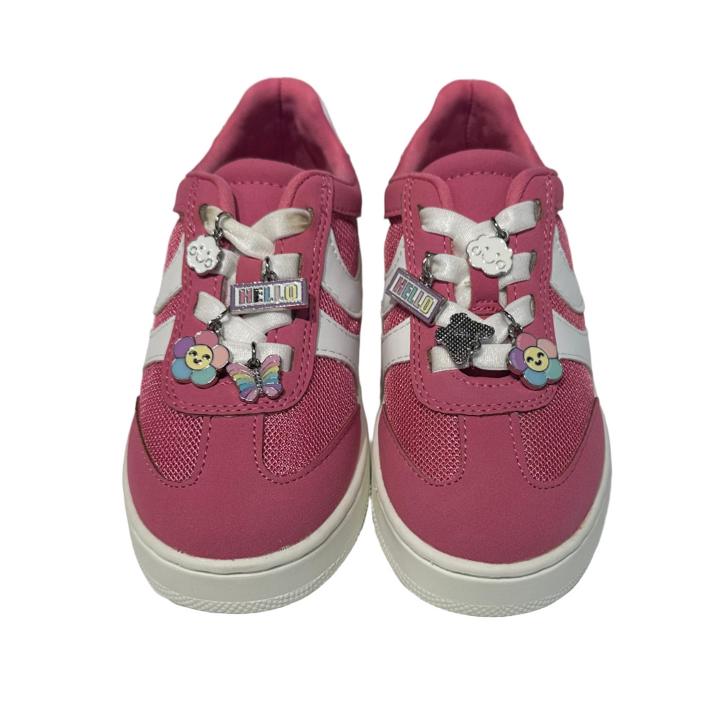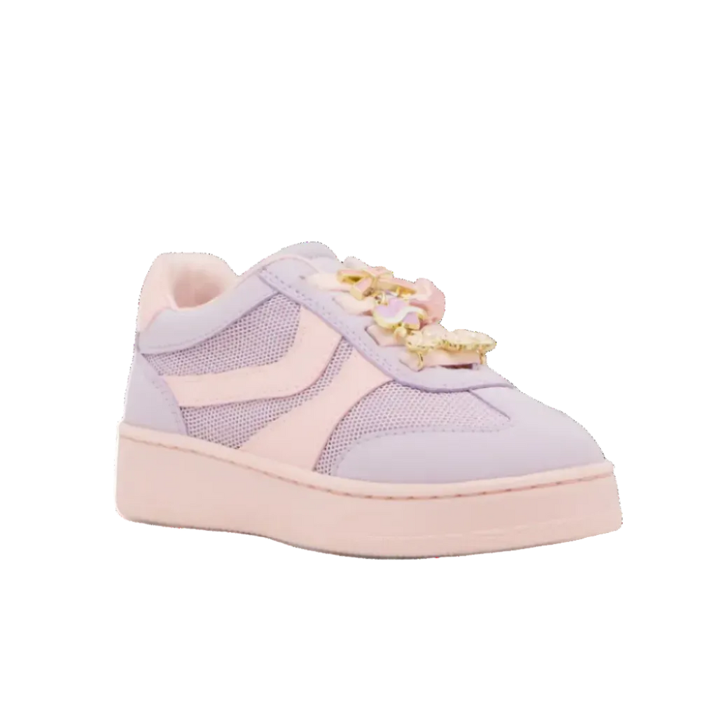 Trendy and sleek, the Steve Madden TJerseyC girls' sneaker brings the charm. With a vegan leather upper featuring metallic accents and lace charms, this platform shoe is still functional under all that style. A soothing lining and durable sole equal plenty of room for fun.