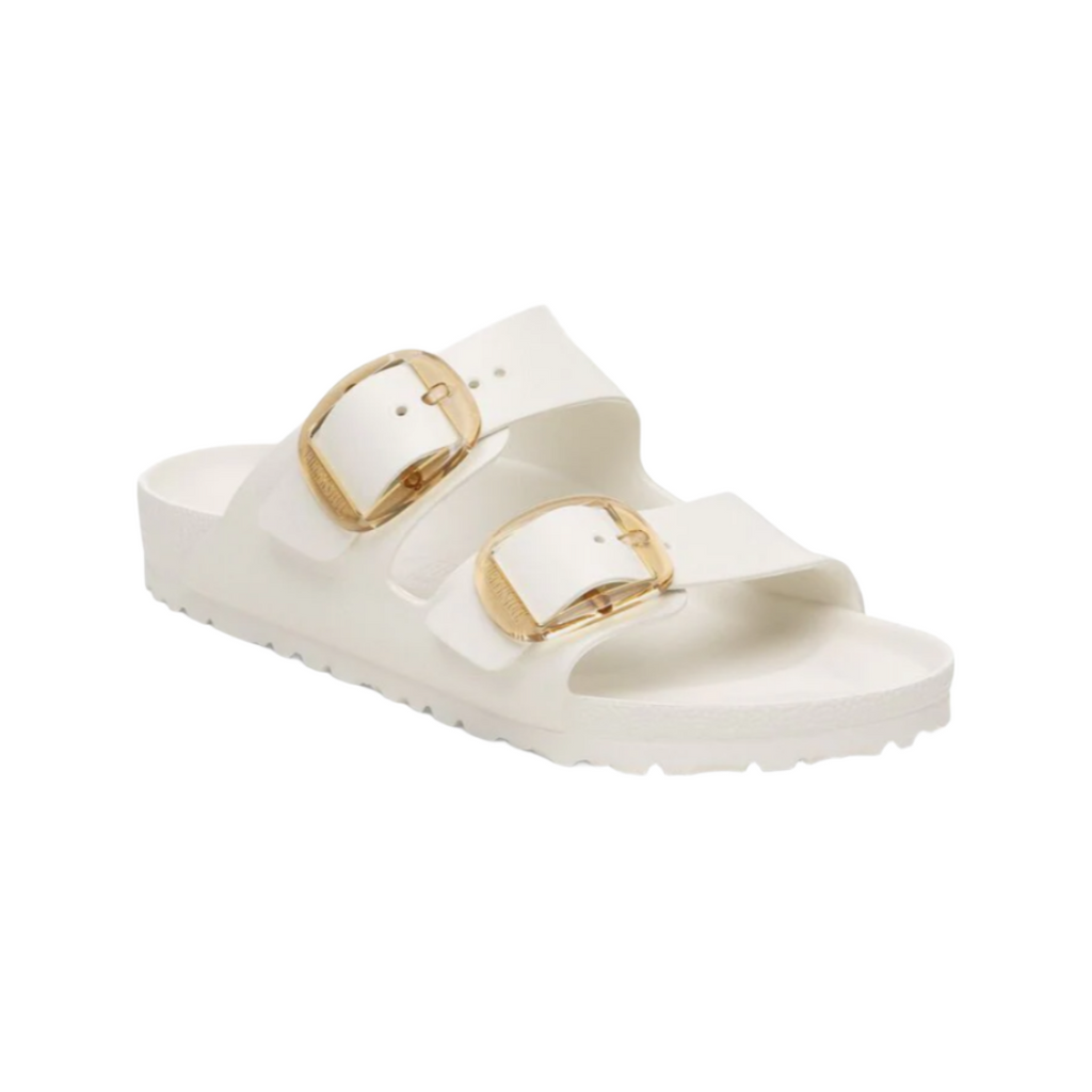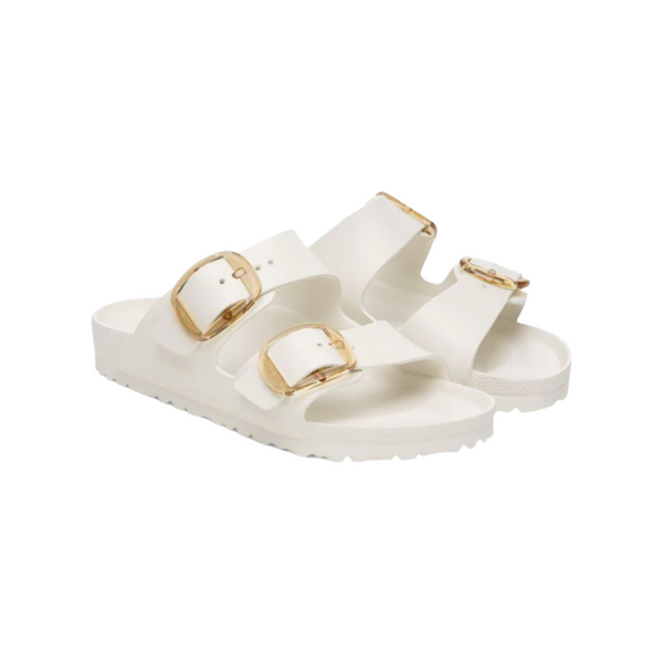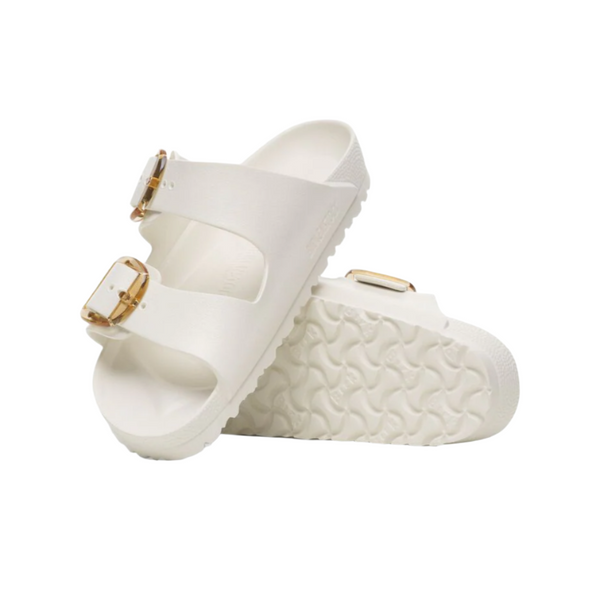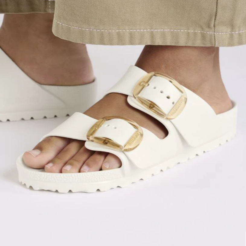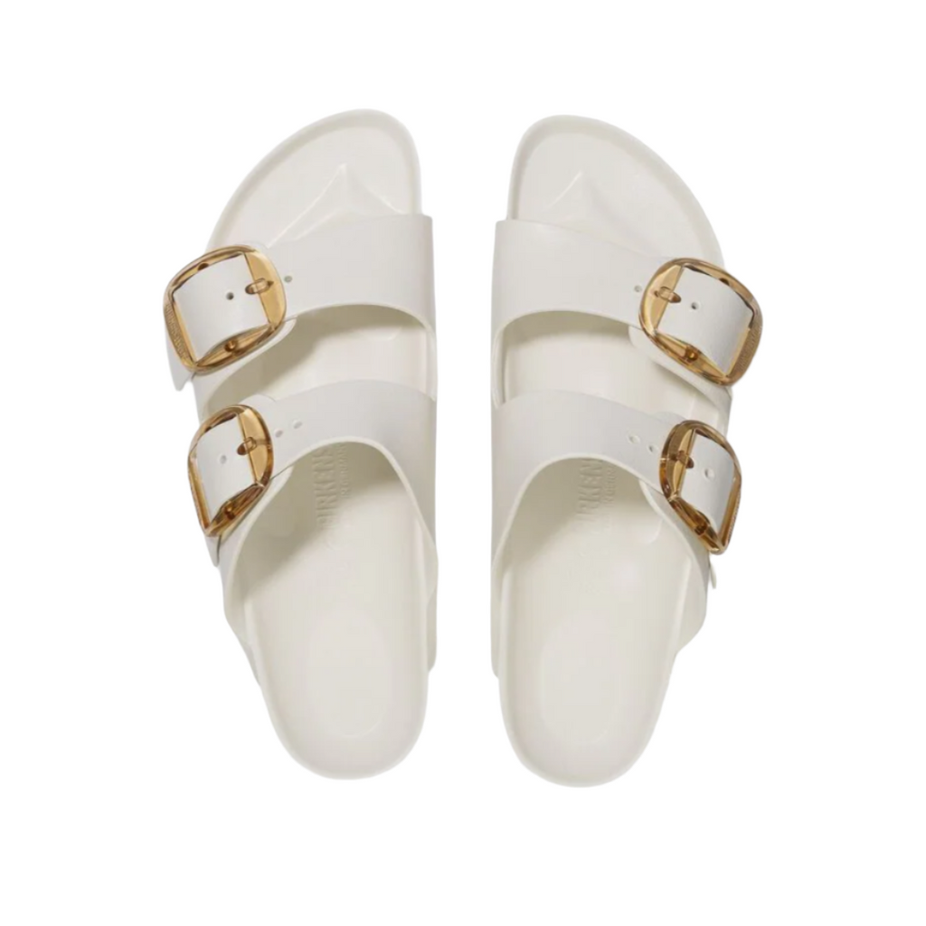 The BIRKENSTOCK Arizona is a genuine classic. Modeled on the cork sandal, this version is made from EVA. The high-quality, odor-neutral EVA has been tested for harmful substances and combines numerous positive attributes: it is very light, highly elastic, water-resistant, and skin-friendly and offers the comfort you have come to expect from BIRKENSTOCK. This version features our popular Big Buckle made from a stainless synthetic material and makes an impression with its durability and minimalist design.