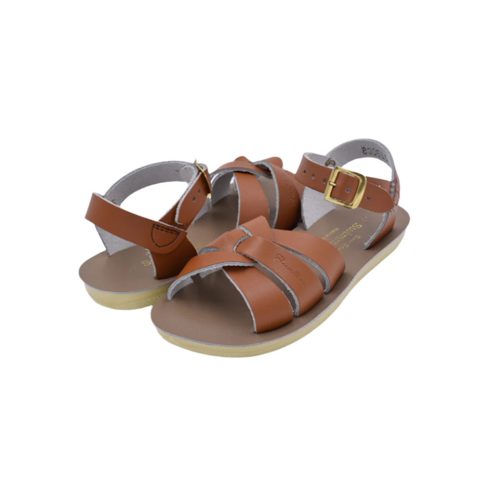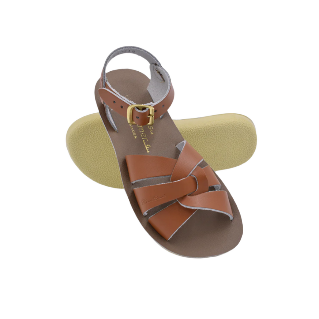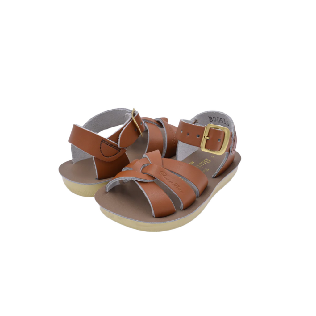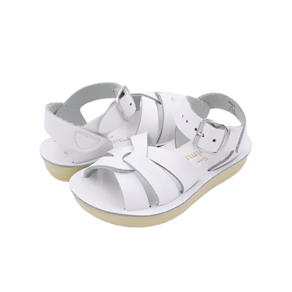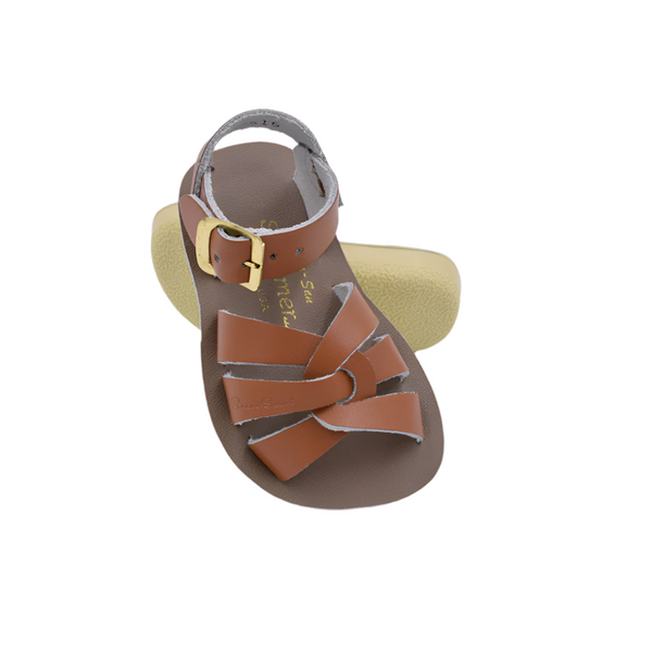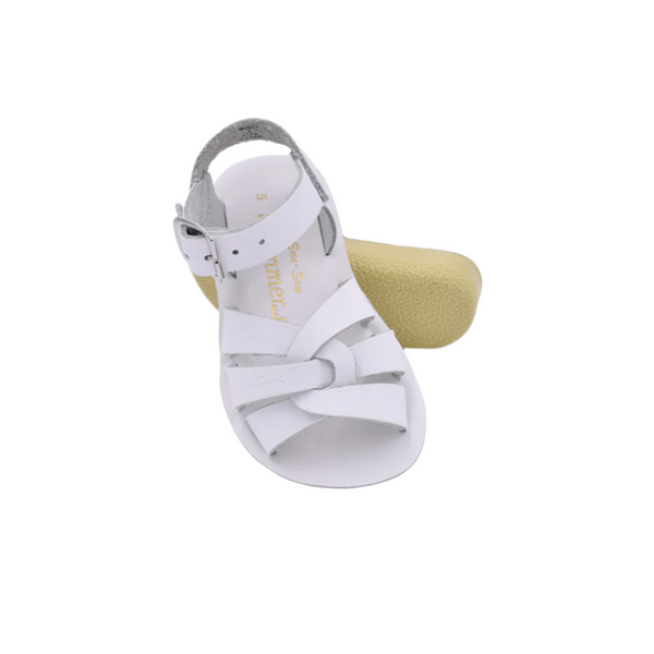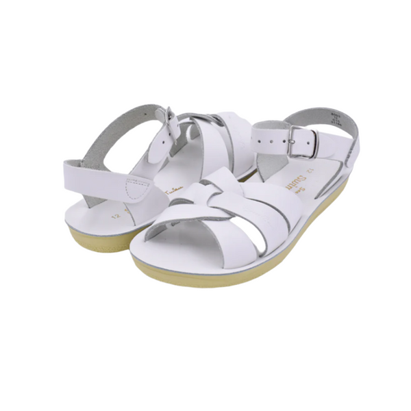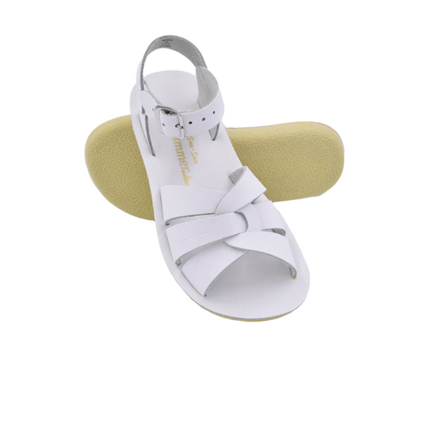 The Sun-San Swimmer has a slightly narrower fit and comes in a lightweight, cushioned urethane sole. Rust-proof brass buckles and scuff-resistant, water-friendly genuine leather make them ideal for in-and-out-of-water wear. They clean up so easily and, with proper care, will last for years.